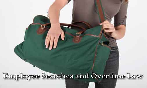 Employee searches and overtime law. Imagine you work in a store that has had problems with employees stealing valuable merchandise. The store now has a policy that when an employee leaves at the end of a workday, any bags that he or she brought into the store will be searched. As such, after you punch out at the conclusion of each shift, you wait while a security guard goes through your bags.
